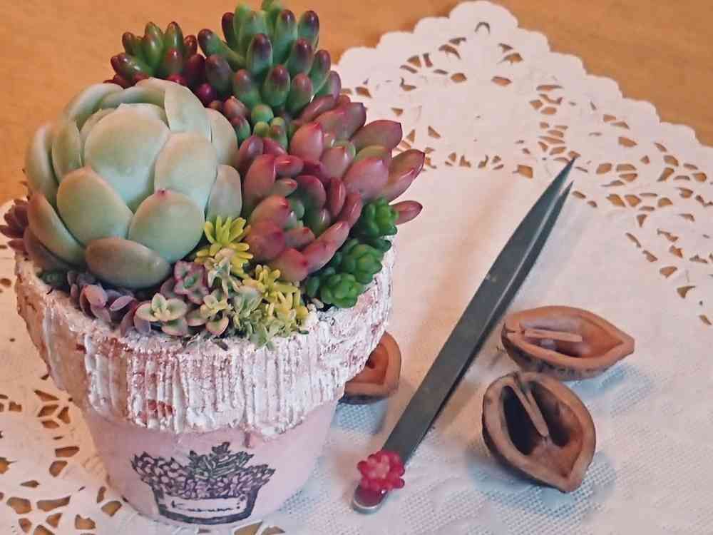 寄せ植えだけど、鉢が大きいと真ん中を山にする人もいるね。あくまで多肉の大きさや高さで調整するみたい。鉢が小さいチマチマとかは、山にするのと、フラットにするのがあって、出来上がりの雰囲気が全然違うよ。