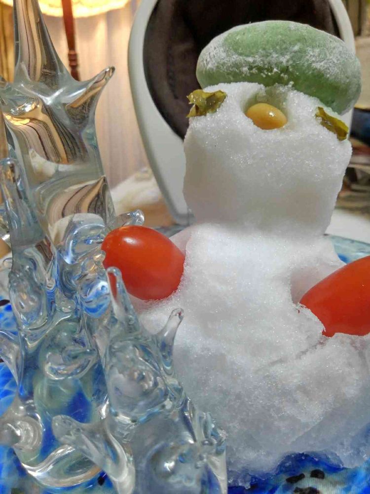 苦心の作、鼻も手もつやつやで可愛い☃️雪だるまですね。