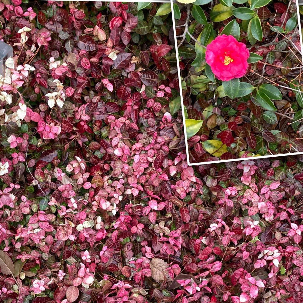 ハツユキカズラの横に咲いているのは薮椿かも。