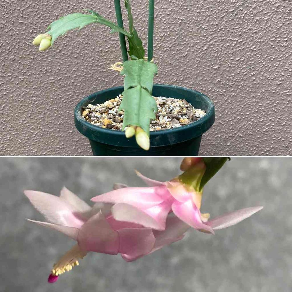 昨年末に届いたシャコバサボテン【雪うさぎ】、咲き始めました。