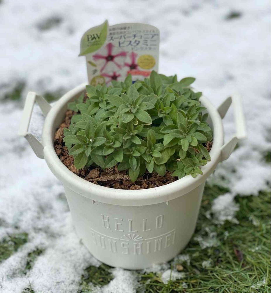 庭には雪が4cmくらい積もりましたが、軒下で育て続けているスーパーチュニアビスタミニはとても元気です✨