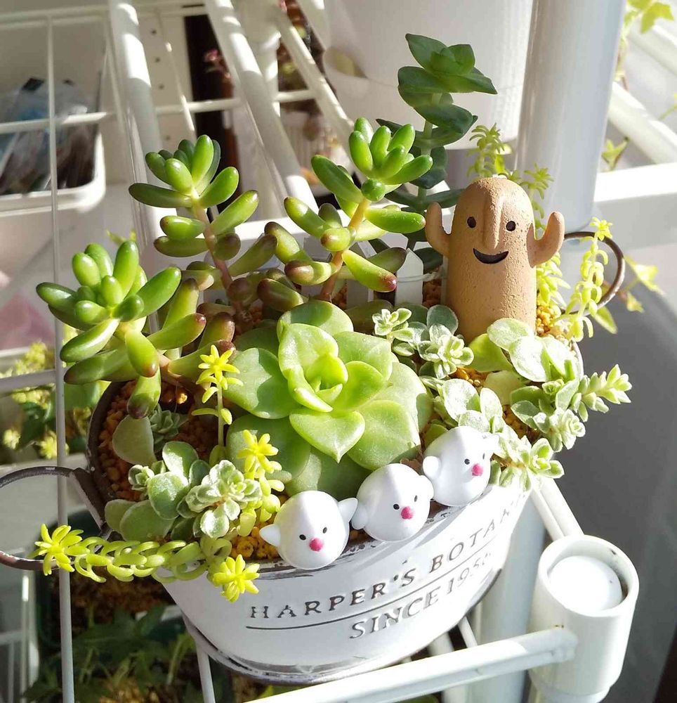 セリアでハニワとブリキ缶を見つけたので初めて多肉の寄せ植えに挑戦💕