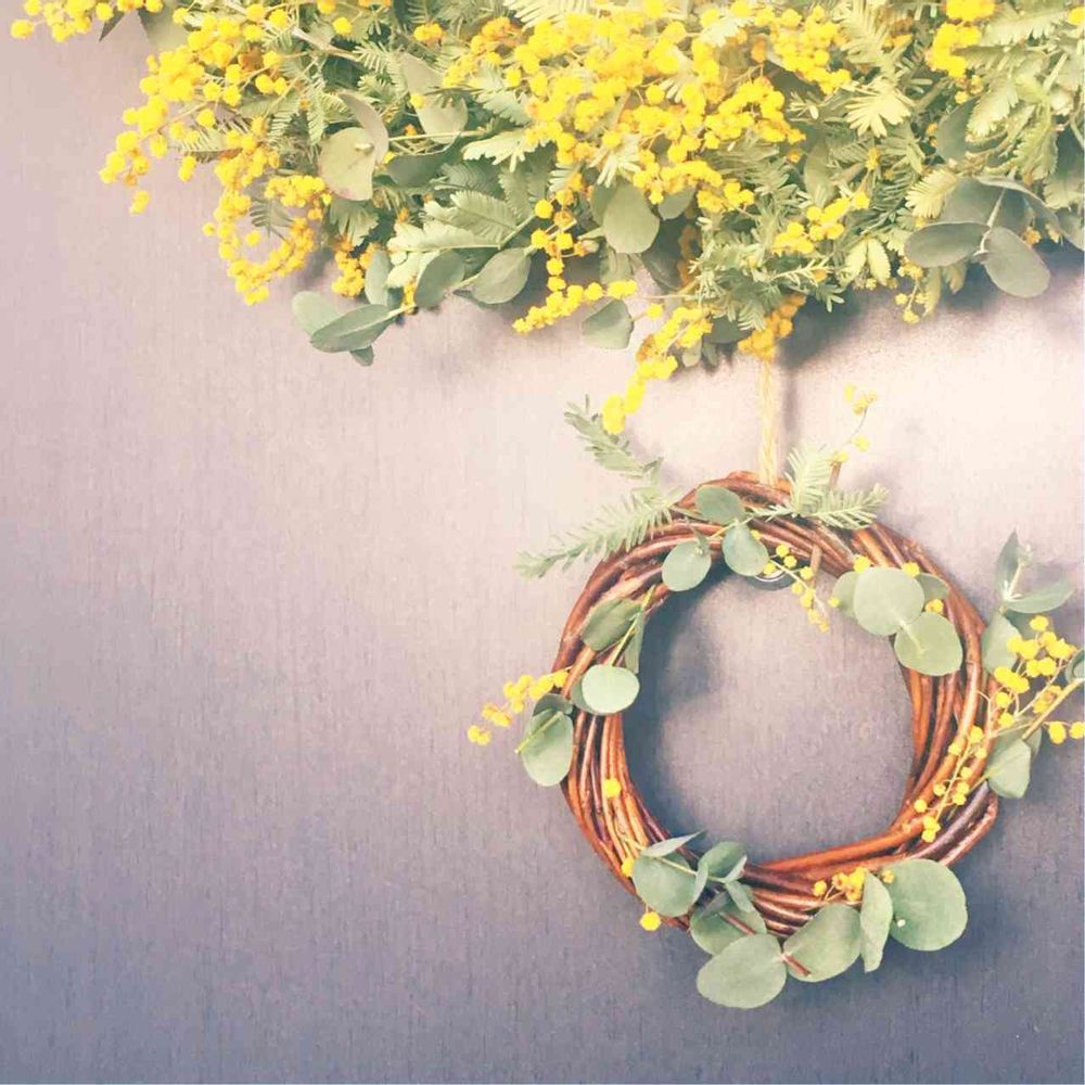 ちはるさんの玄関,ミモザ,ミモザのリースの投稿画像