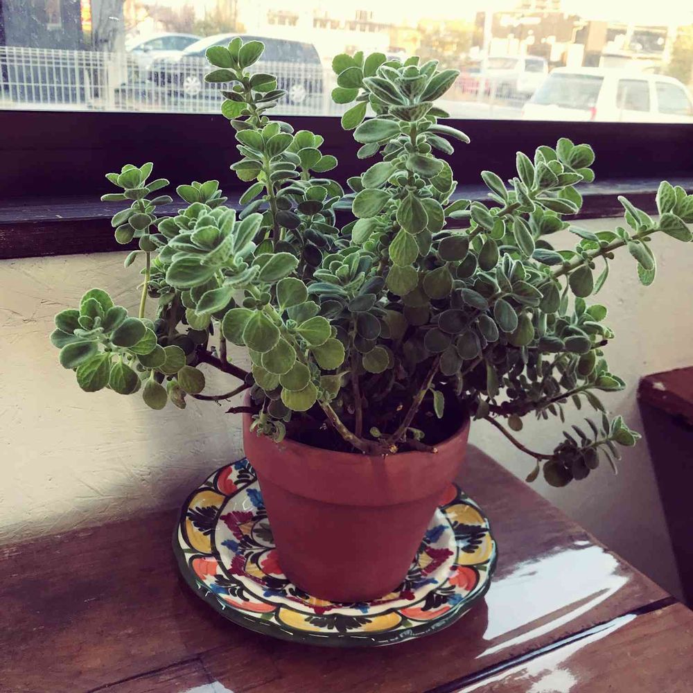 テラコッタの鉢と下のディスプレー用の今は使ってないカラフルなお皿のコントラストがお気に入り👍