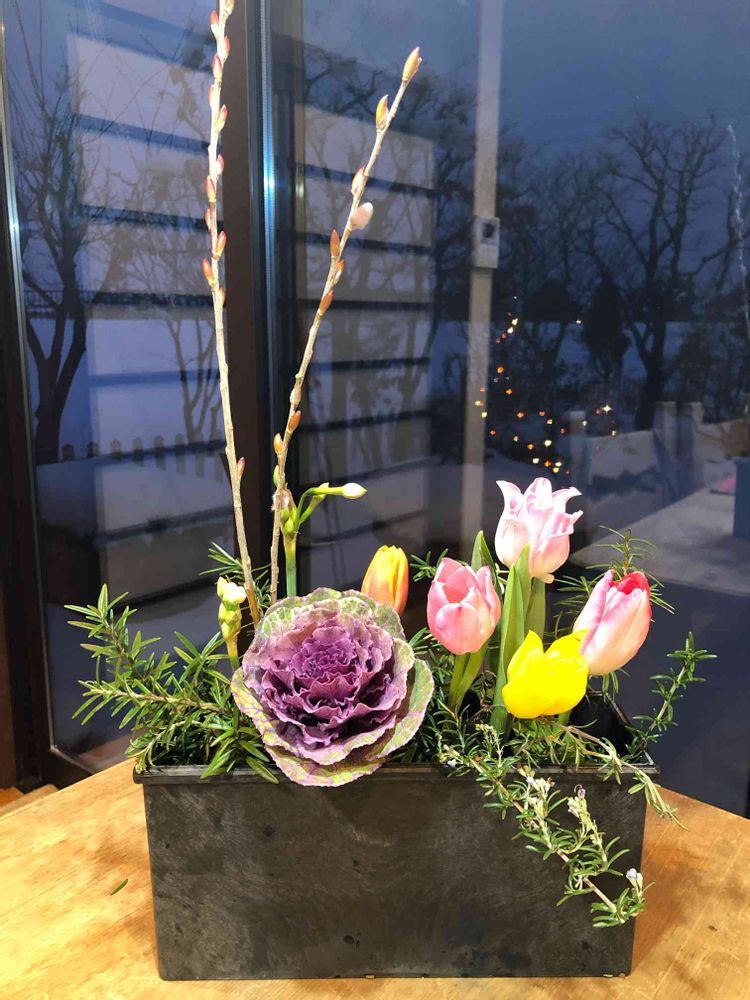 今日は一日、好きな音楽を聴いたり料理したり、除雪したり、、、ふと、玄関の花を直そうと思いました☺