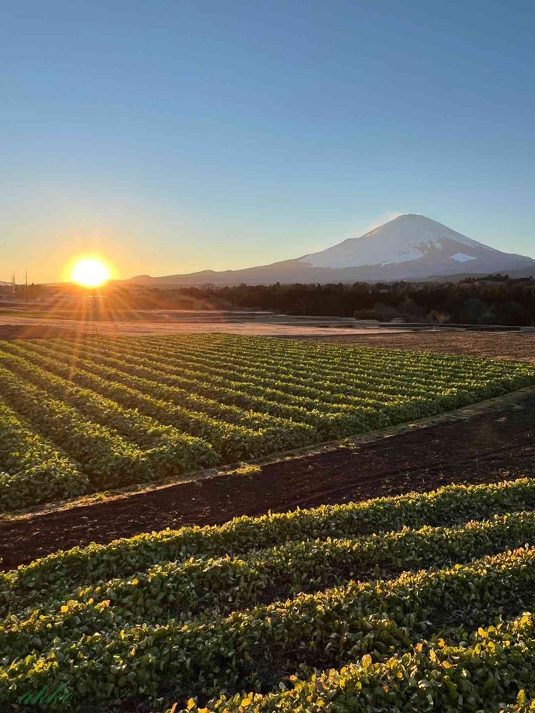 画像の後にアプリ絵を混ぜるのね😊✌👌以前自分の顔隠すのに使ったわ🤭🤭🤭主役が富士山と思ったら綺麗な葉の花畑の山を照らしていたのね太陽と畑、富士山🗻と👏👏👏👏👏