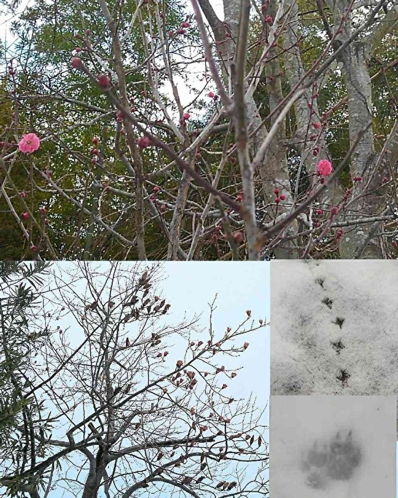 雪に鳥(カラスかな?)とちっちゃな犬の足跡が🐾