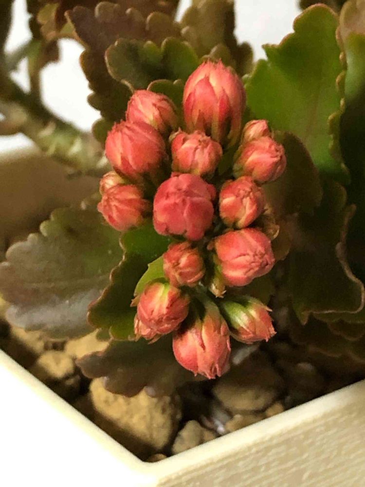 年末からずっと蕾のままのカランコエパーフェクタ。調べたら10度以下で休眠するらしい。クリスマス寒波以降、屋外はもちろん室内も(人がいないので)10度以下だよ〜💦簡易温室(夜間はマイナス)の多肉棚に突っ込むか⁈