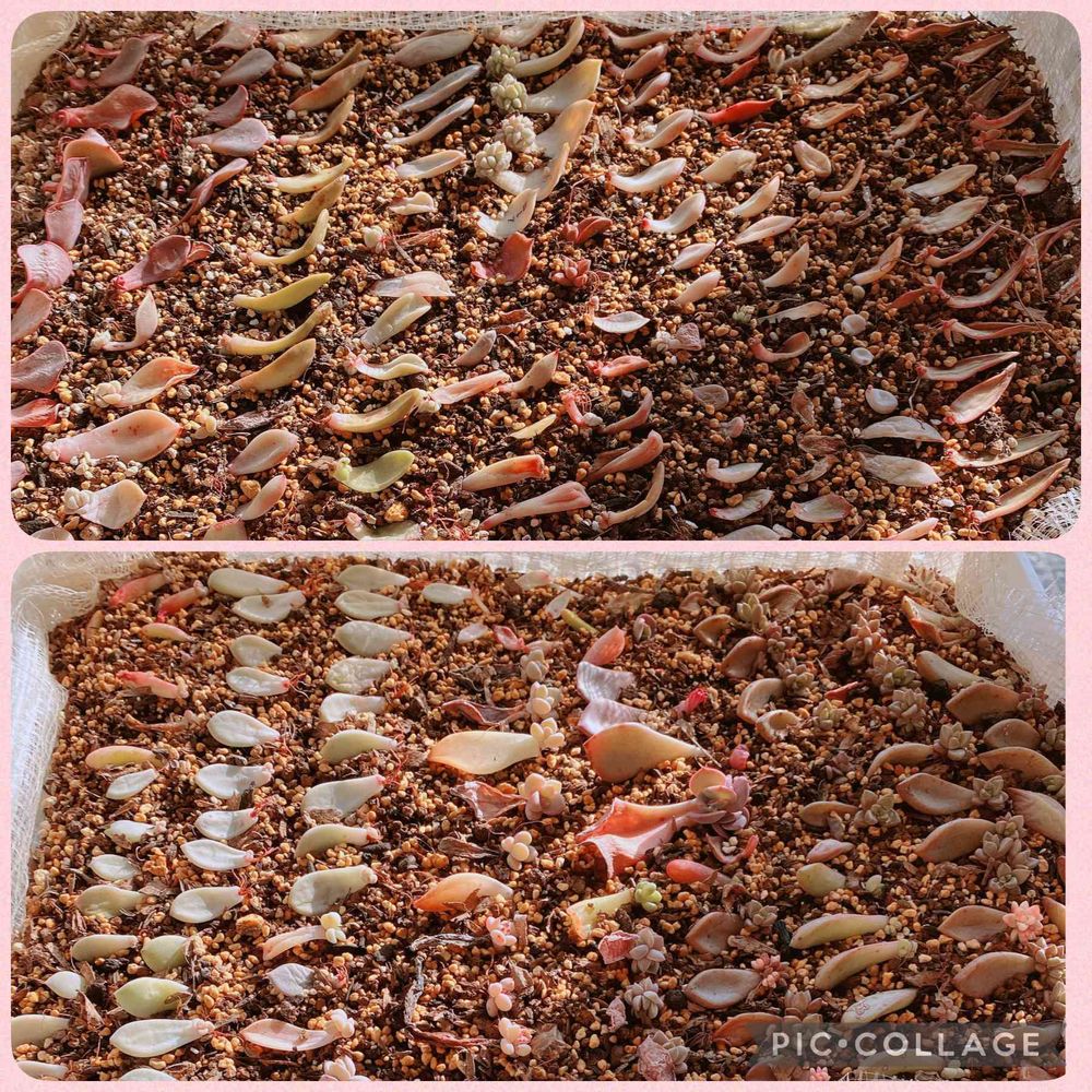 この2つのトレイ、週末しか多肉ちゃんに会えない私の代わりに、土の配合から葉っぱを並べるまで全ておばあちゃんがやってくれたの🤩