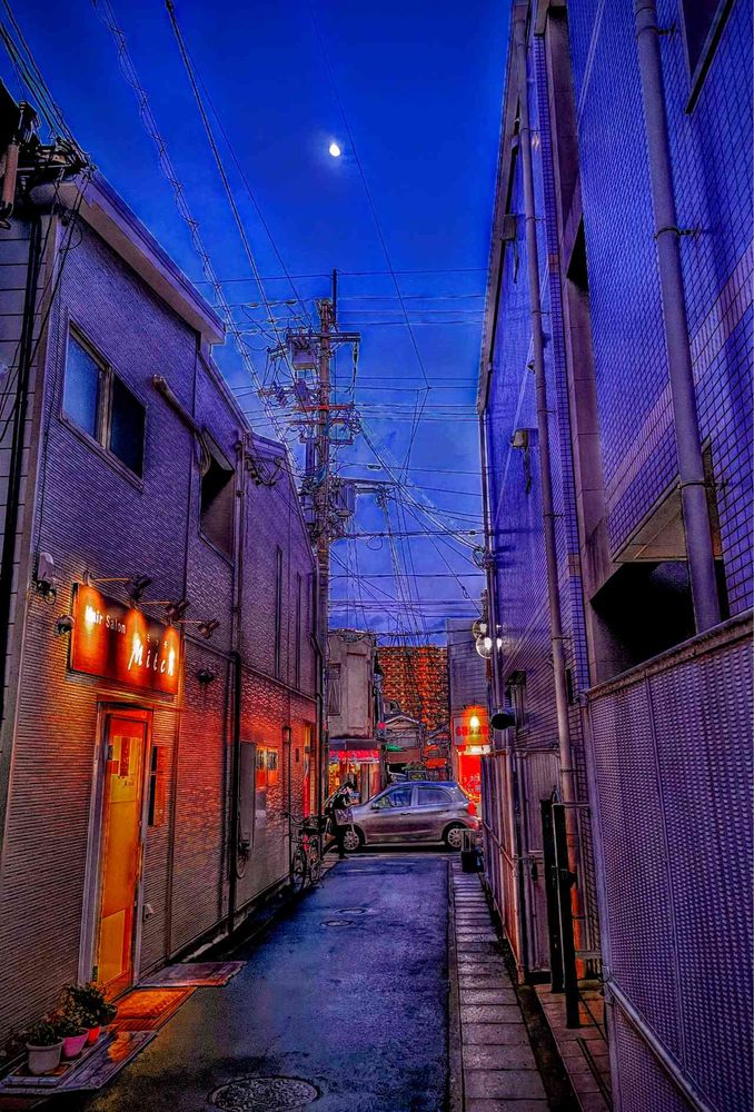 路地裏の真正面にみえる人と車が交差しているところが好きです…