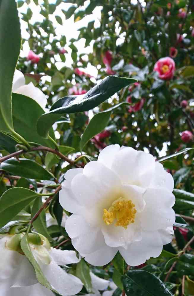 いろんな椿が植わっていますが、私はこの真っ白な椿が一番好きです(*^_^*)