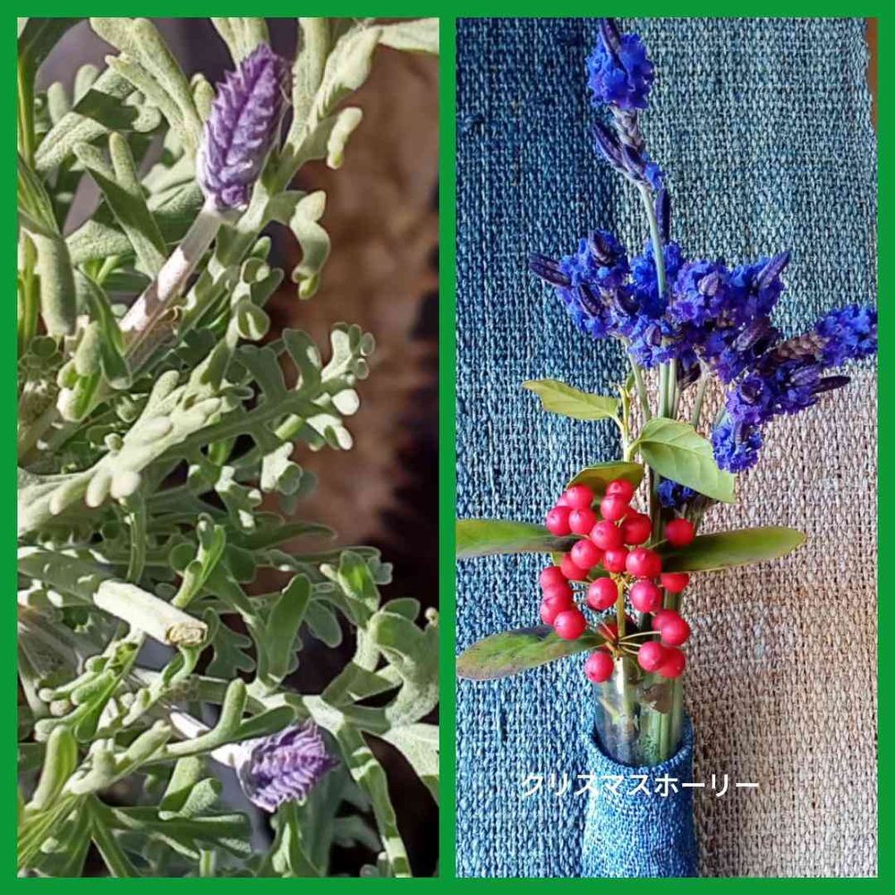 カット✂🌸して1輪挿しにクリスマスホーリーと飾りました。