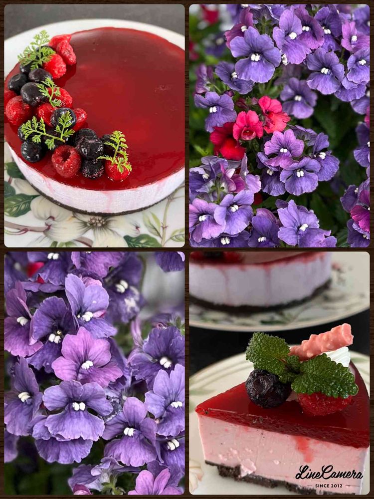 ラズベリームースケーキ🍰を作りラズベリーとブルーベリーで飾りました。