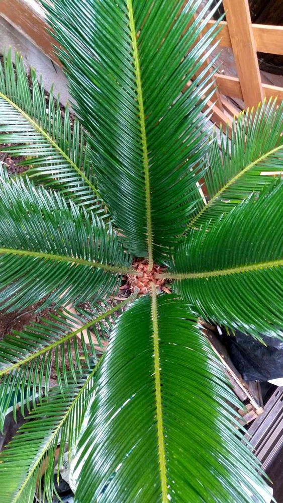 ソテツは「蘇鉄」で鉄分を好みます。うちでは、錆びた釘等を土の上に置いてます。あまり日の当たらない所でも、多少の水やり忘れも大丈夫。実は毒があって毒抜きしないとNG.