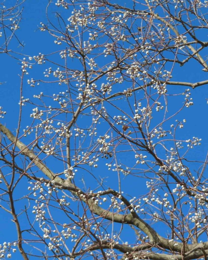 散策路沿い、ナンキンハゼの白い実が青空をバックに美しく輝き、お花が咲いているかのようでした。