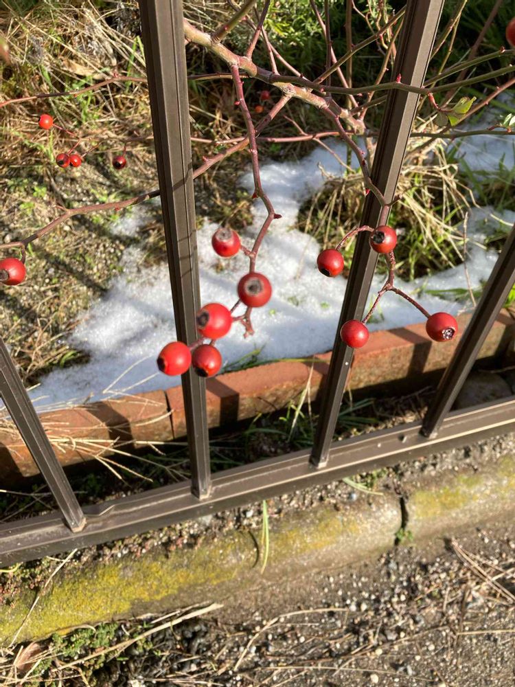 雪❄️とけて、天気も快晴に散歩日和。おぉ(☉︎౪ ⊙︎)赤い実、これは何じゃろな?