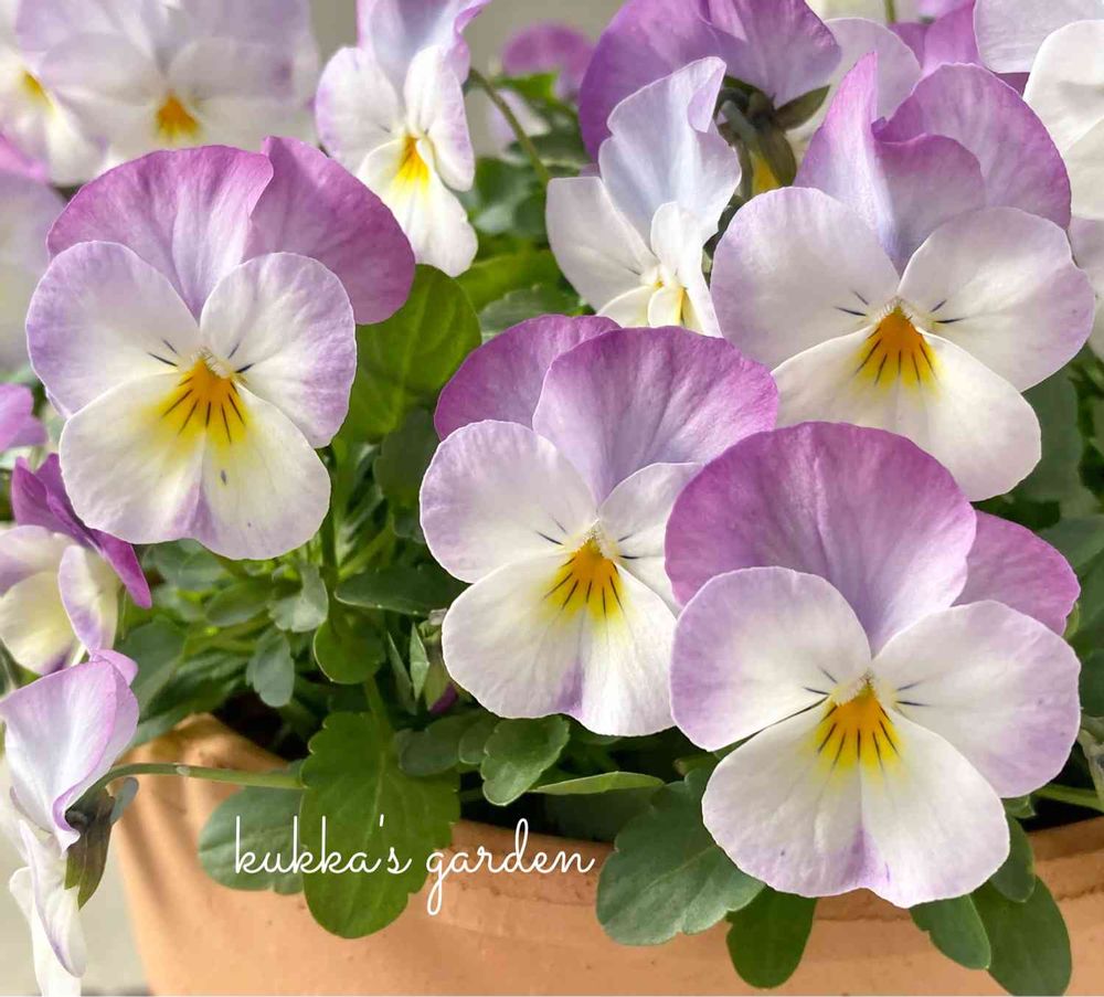 優しいほんのりピンク色のビオラさんたちに胸キュンです(,,• •,,)💗