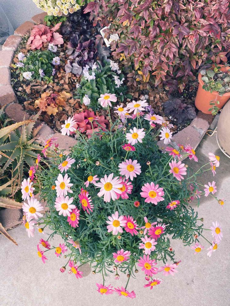 とっても可愛いお色のマーガレットさん💓まん丸に可愛いく咲いてますね!