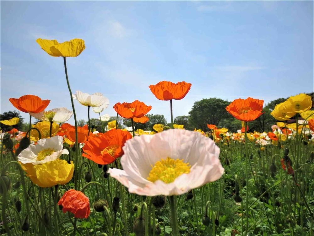 昭和記念公園で一面に咲くポピー