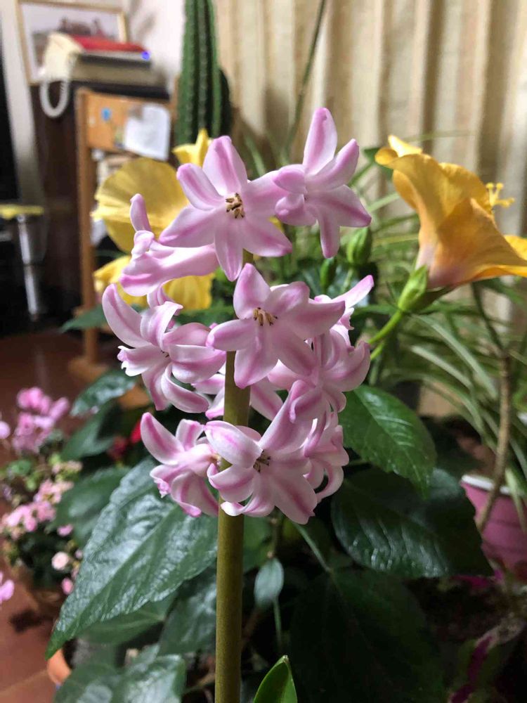 ヒヤシンスとハイビスカス🌺冬の花と夏の花‼️