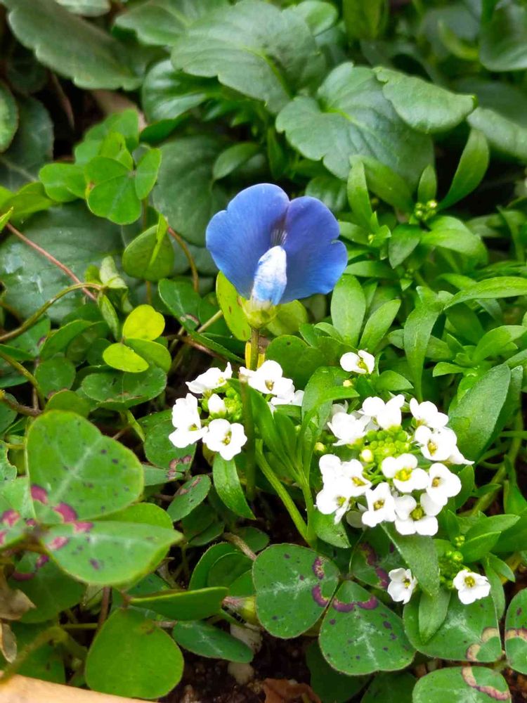 シエルブリエと寄植えにしているブルークローバーです。年末に寂れた苗屋さんで品薄状態の中で出会いました。増えて欲しいです✨