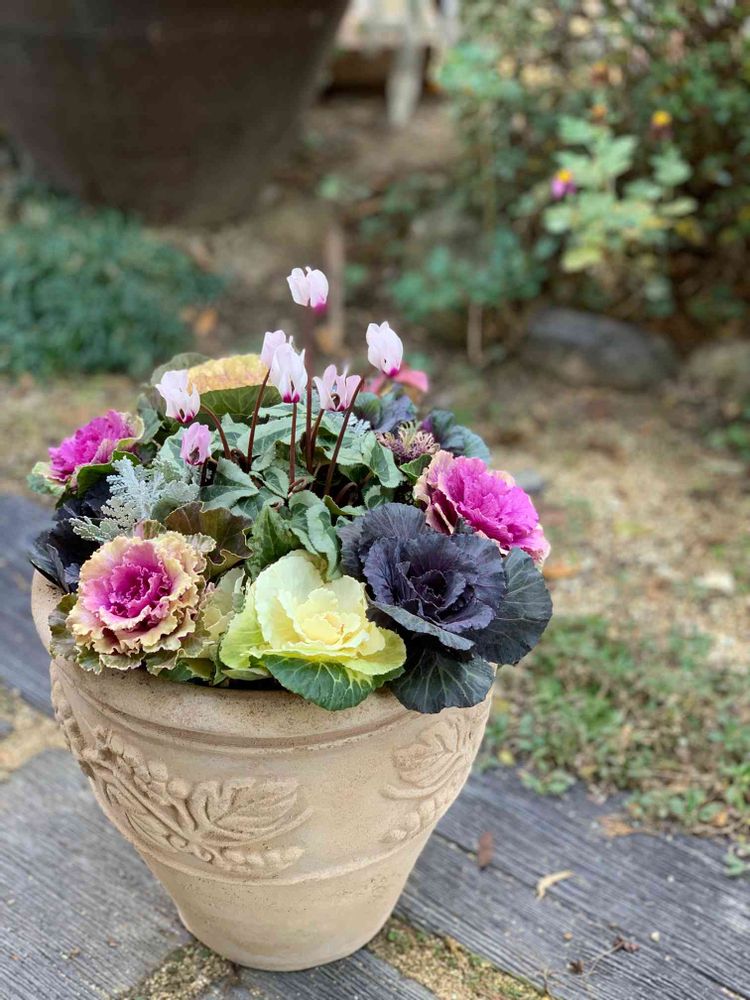 葉牡丹とガーデンシクラメン