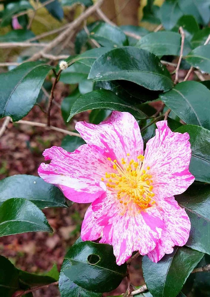 斑色の山茶花が数輪 咲いていました☺️