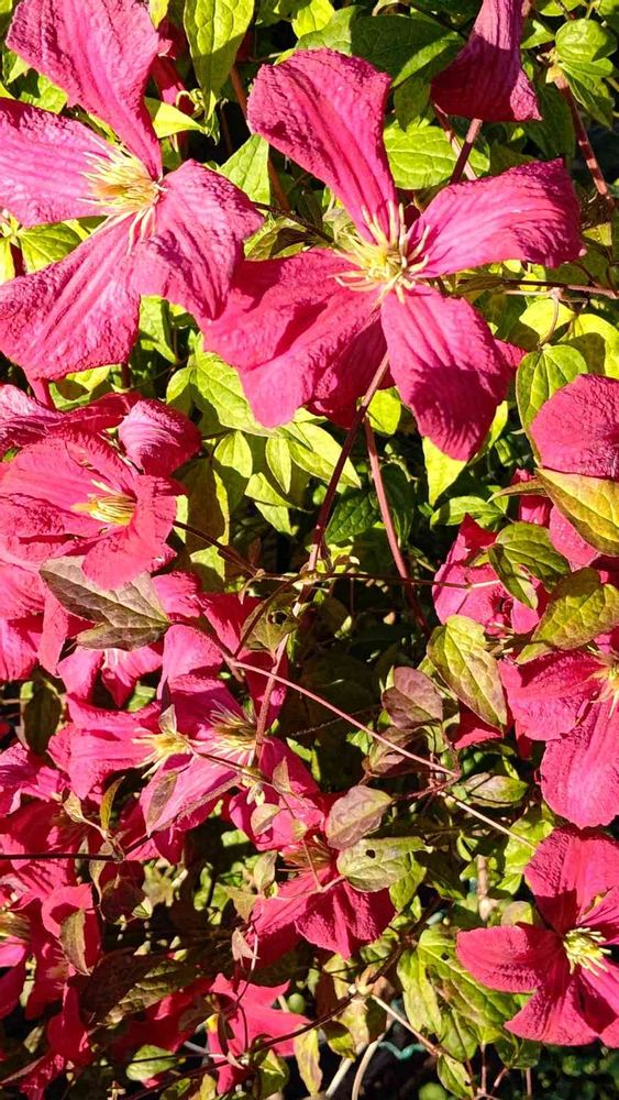 冬もこんなに鮮やかに花を咲かせるんですね✨冬は白いクレマチスしか記憶になくて。葉っぱは少し銅葉になってましたが、落葉もせずに全体にとても綺麗でした🤗