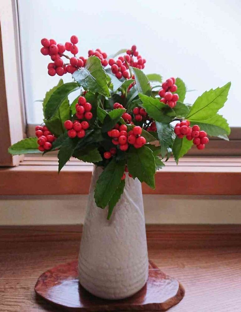 千両も然ることながら花瓶が素敵ですね👏