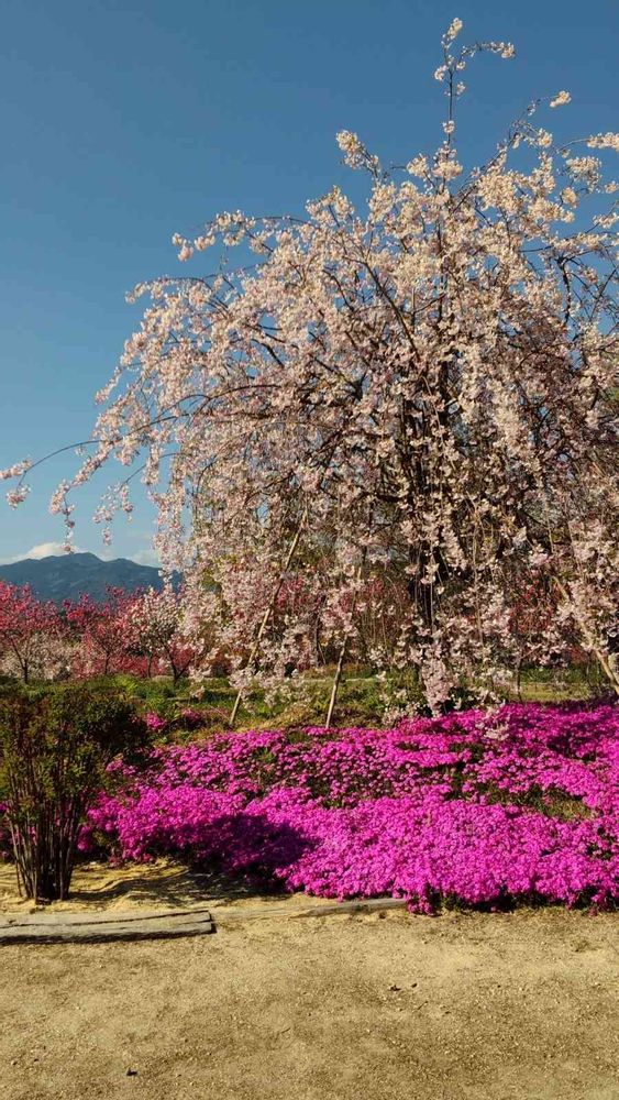 芝桜と花桃と枝垂れ桜と青空🌺🌸💮💙💕