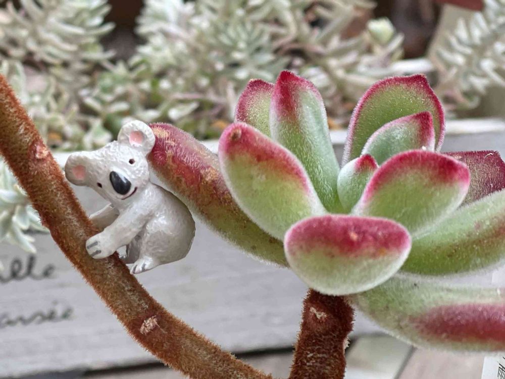 🐨コアラちゃんが多肉ちゃんになでなでしてもらってるね…