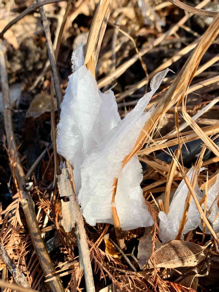 半信半疑で覗き込んだら、こんな綺麗なシモバシラが付いていました😄