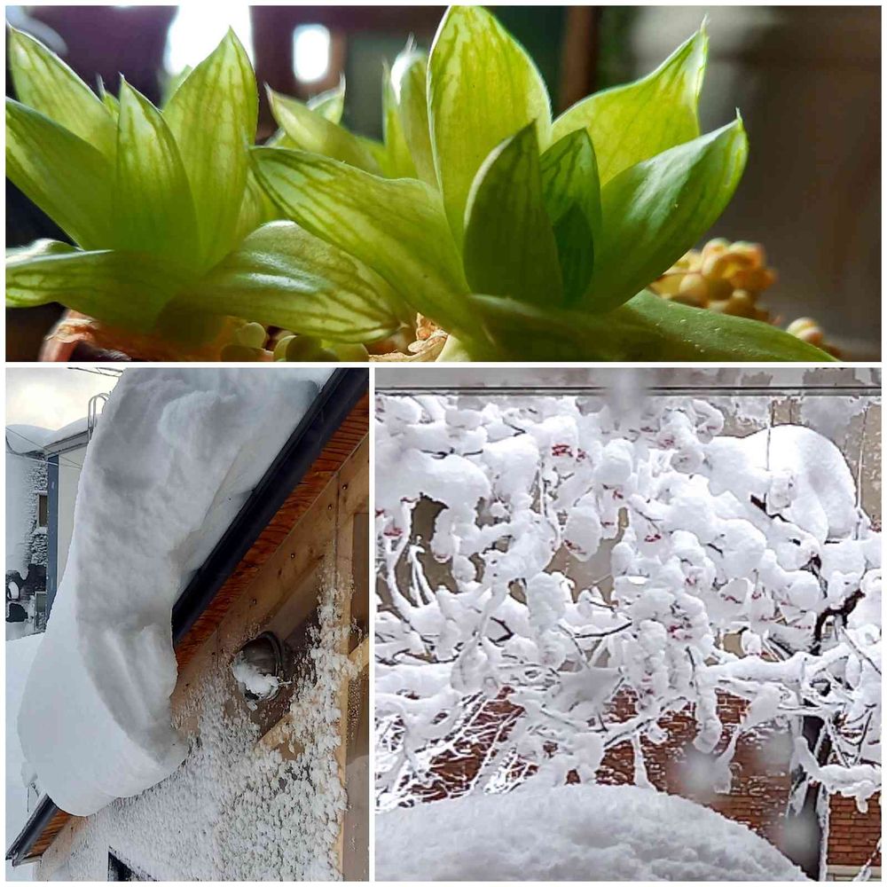 右下は、職場中庭のナナカマドにベタ雪がくっついて枝が重たいよーと叫んでいました❗