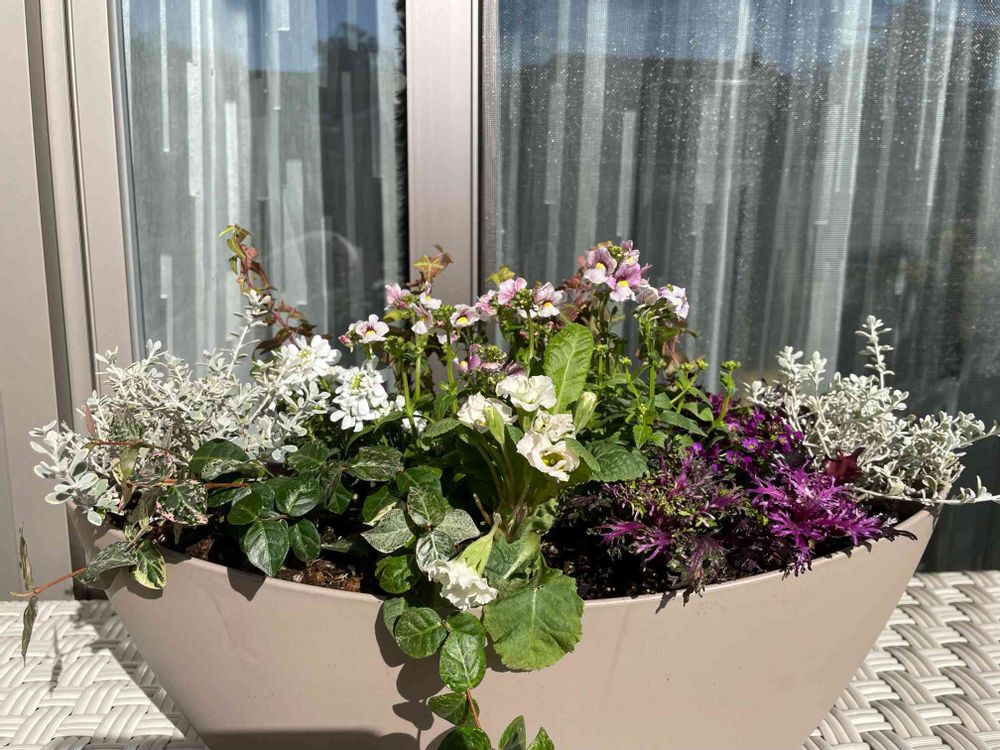 お店でネメシアを使った寄せ植えを見て、見よう見まねで初めて寄せ植えなるものを作ってみました。