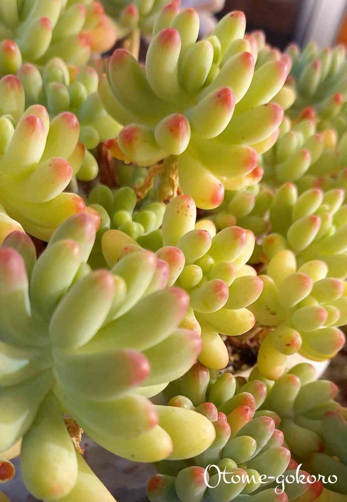 寒くなってぷっくりした葉の先端が赤く紅葉した乙女心