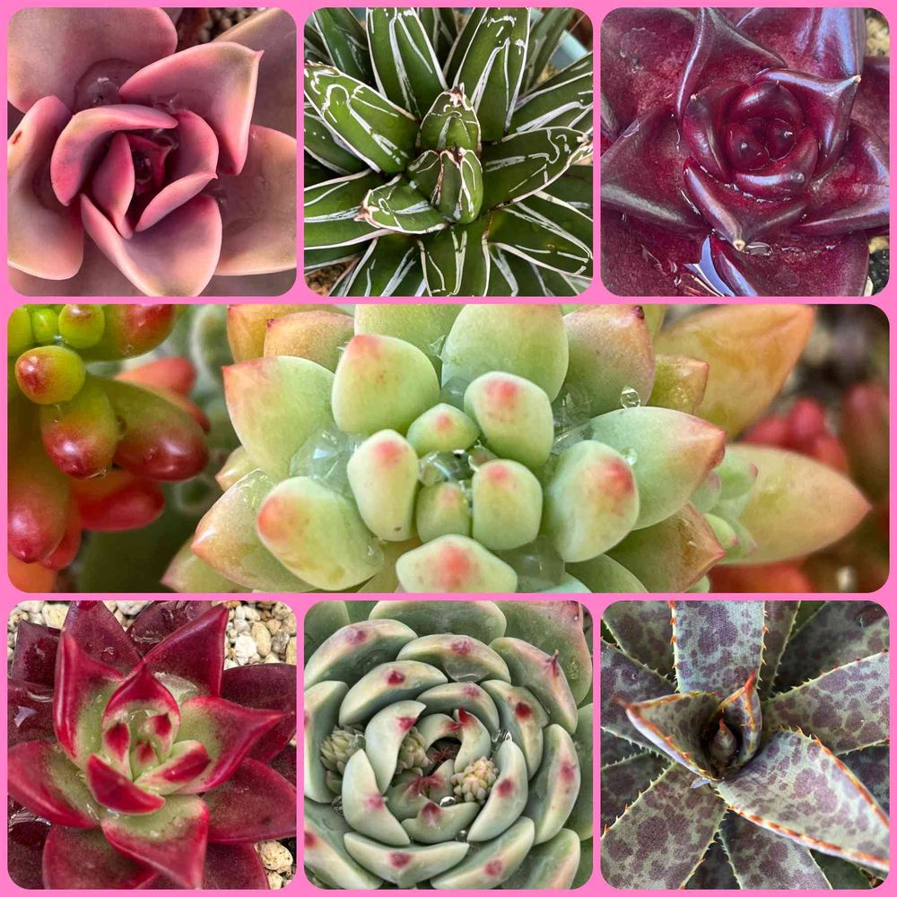 お外で寒さに耐えていい色になってる多肉ちゃん達と迎えたばかりで夜は屋内に取り込んで過保護にしているパープルスポットさんのド真ん中‼️