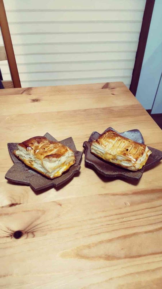 今晩、美味しいそう、私もよく作るんです。パイ生地に、クリームチーズを挟んで焼きますと、また、違った、食感でおいしいですよ。