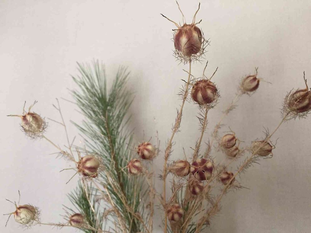 今日は雨降ってすごく冷えています。去年のニゲラドライ。
