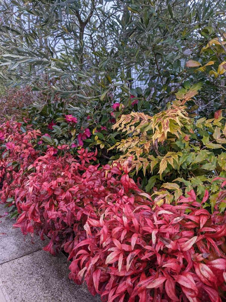 おたふく南天が真っ赤に色づき、寒空の下お出迎え