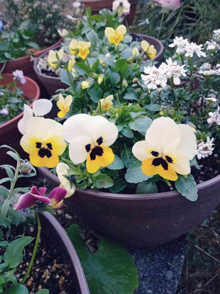 ありがとうございます。でもでも、名前のわからないのは白いお花なんです。ちなみに奥の黄色いビオラは見元園芸さんのビオラです。小さいけど、花付きが良いのでうれしい。( *´艸`)