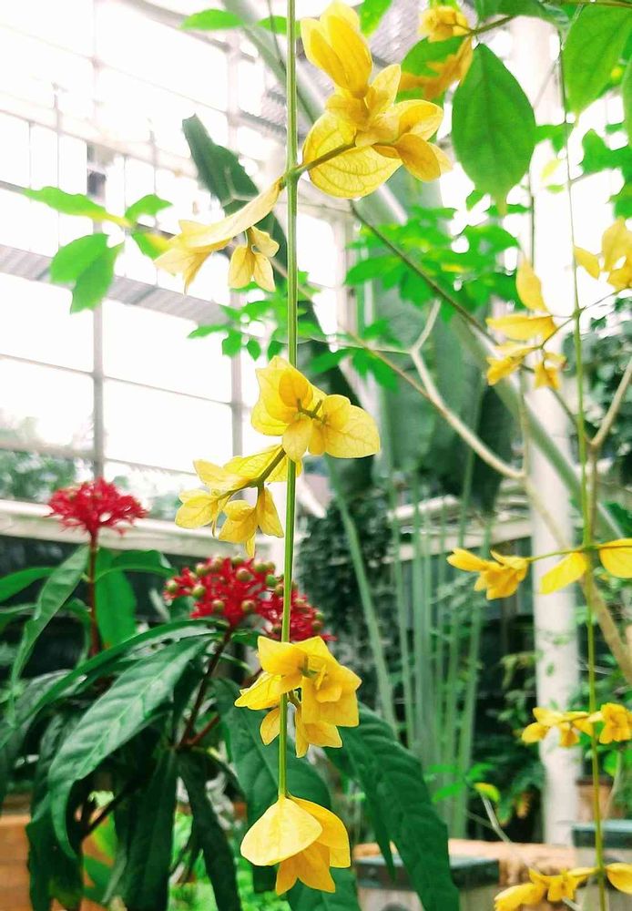 私もこのお花、この植物園の温室でしか見かけないですー💛💛💛変わったお花!長い糸でお花を刺して飾ってある見たいで素敵でしたよー!(o^^o)