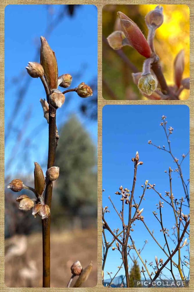 真ん中の尖っているのが葉芽で、その周りに下がっている丸いものが花芽です。つぼみになっているものもありますね。