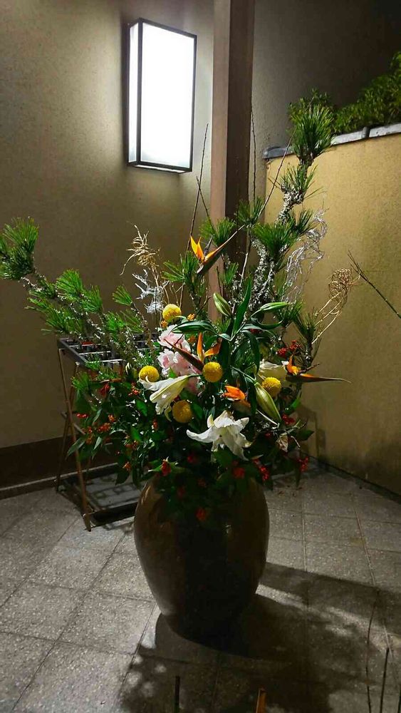 暗くて庭は写せなくて、帰りに生け花を一枚だけ(^。^@)