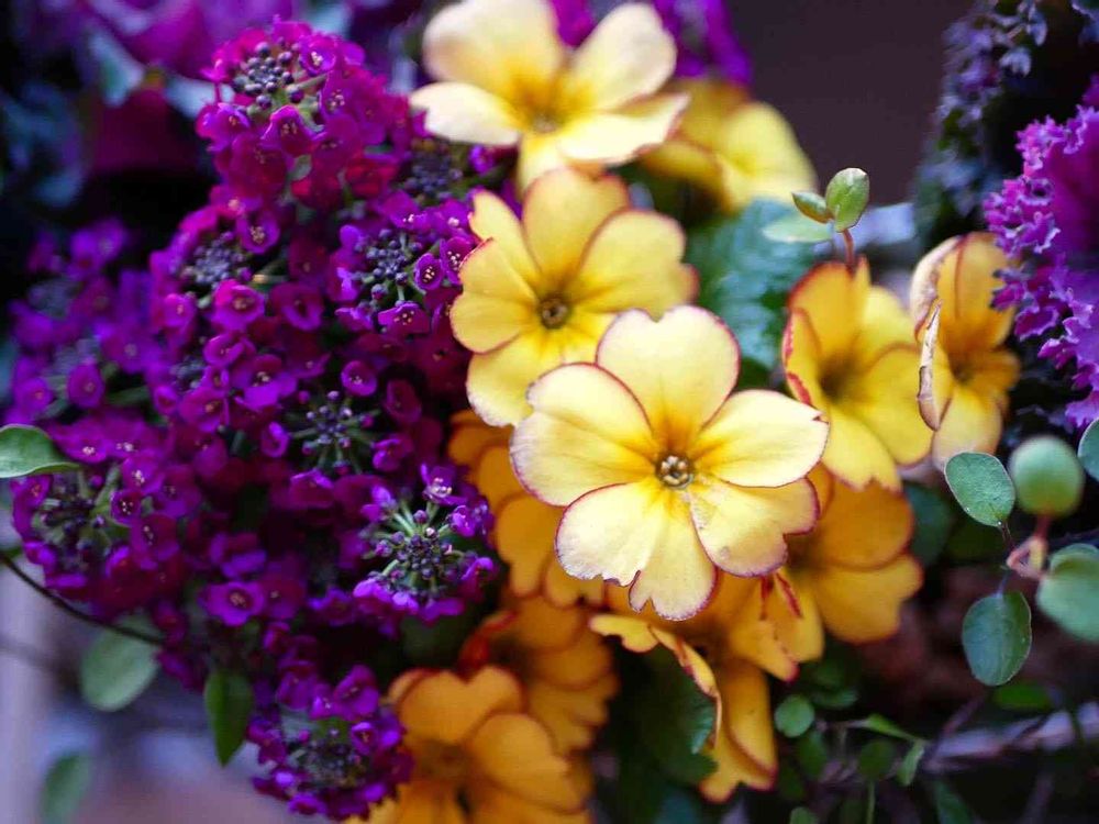 スイートアリッサム、プリムラ。