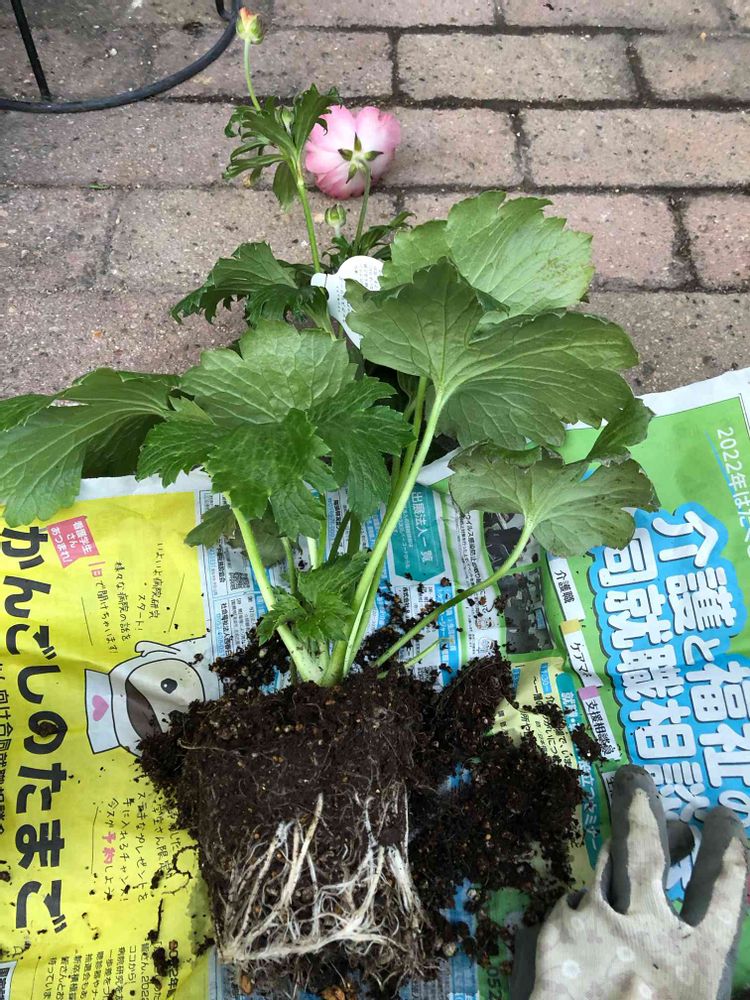 購入したラナンキュラスラックスを鉢に植え替えた。