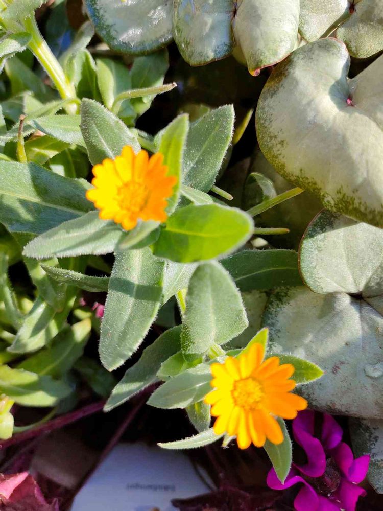 玄関のカレンデュラさん、小さな💛色の花です。😊