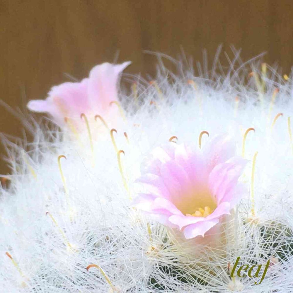 サボテンって蕾の時点だと花の色が分からないけれど、桜みたいな色をしていて白いフワフワに合っていて。