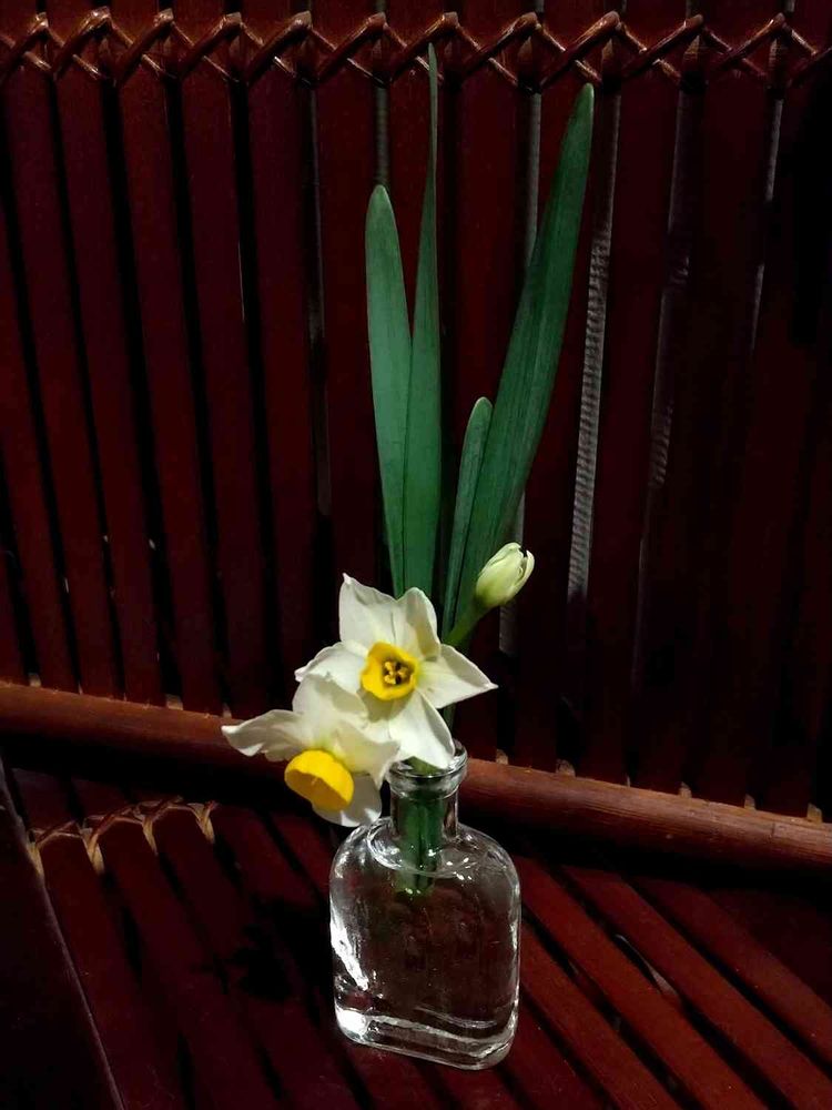 当時の美智子皇后陛下が皇居に咲いた水仙を、手向けてくださった事を思い出して、私も水仙を生けました。