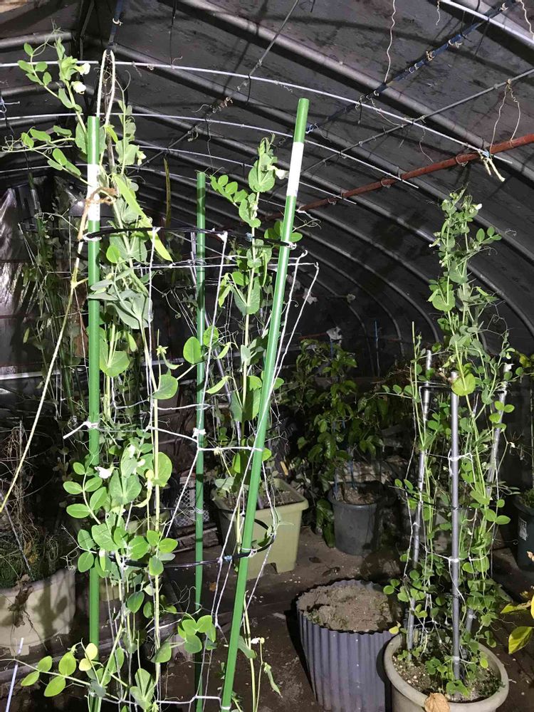 ハウスの中の絹サヤエンドウです。