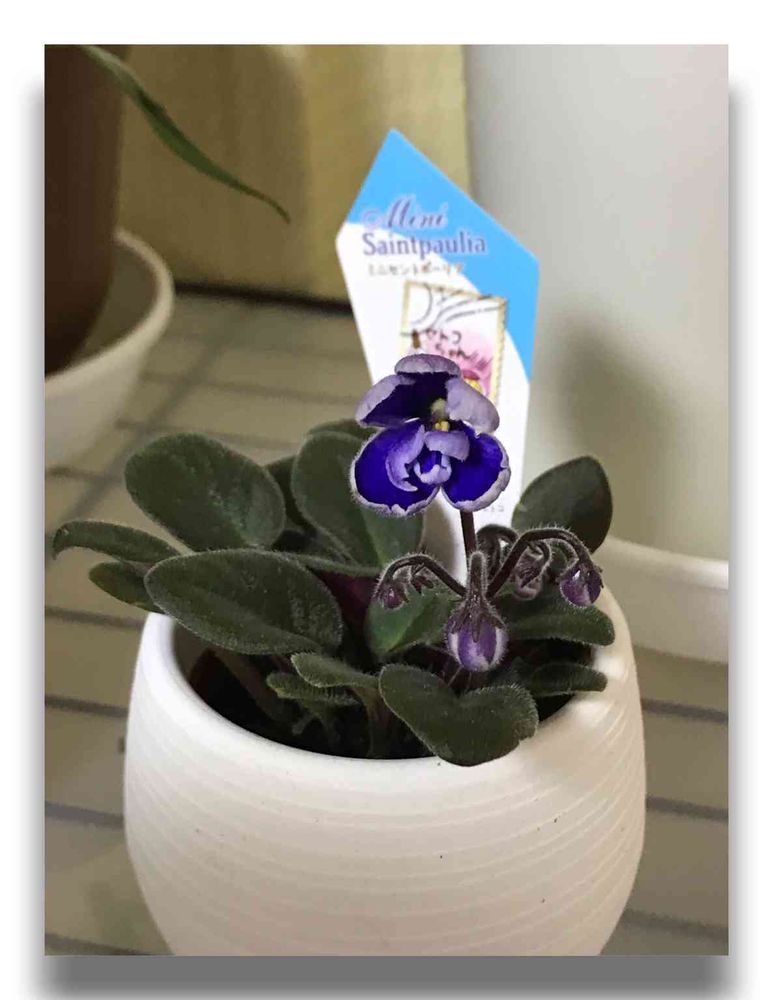 こんばんは。今日から仲間入りした「ミニセントポーリア」です。直射日光NGなので、部屋置き用です。